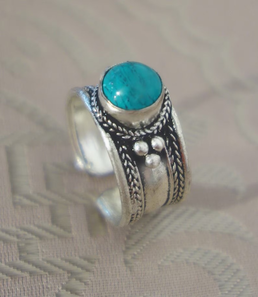 Women's and men's silver RING with turquoise, handmade, from Nepal.