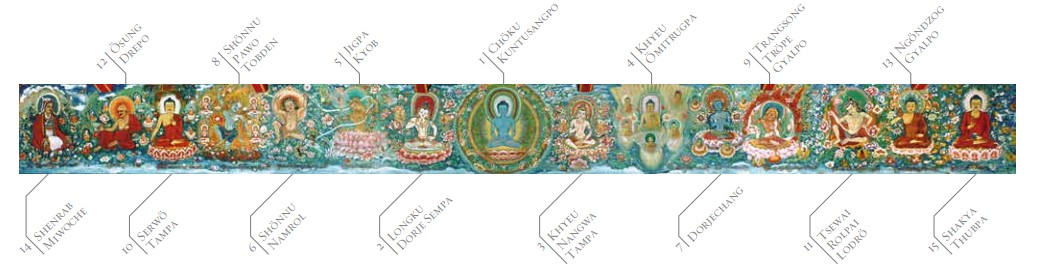 (I più importanti Buddha dello Dzogchen o della Grande Perfezione) dal pannello occidentale del Tempio della Grande Contemplazione a Merigar