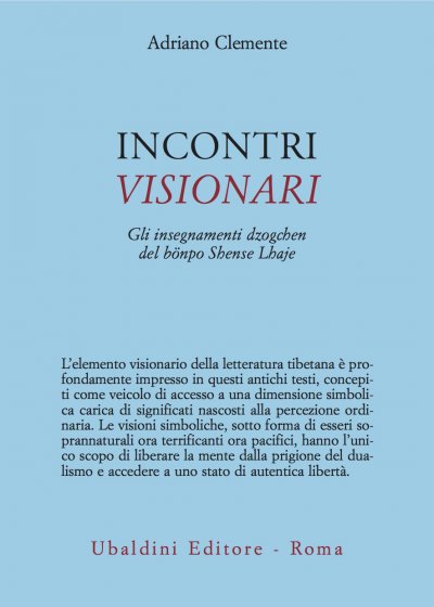 L'elemento visionario della letteratura tibetana è profondamente impresso in questi antichi testi, concepiti come veicolo di accesso a una dimensione simbolica carica di significati nascosti alla percezione ordinaria. Frutto di ricerche decennali e insegnamenti diretti da parte dei principali maestri della tradizione dzogchen, Incontri visionari offre al lettore la traduzione di quattro testi dzogchen della tradizione bön contenuti nel Trenpa Serdam, o L'insegnamento d'oro di Trenpa Namkha, un ciclo di insegnamenti riscoperto da Shense Lhaje, un bönpo del tredicesimo secolo. L'impresa della traduzione di Adriano Clemente si è avvalsa degli insegnamenti orali di Lopön Tenzin Namdak e dei consigli di Chögyal Namkhai Norbu.