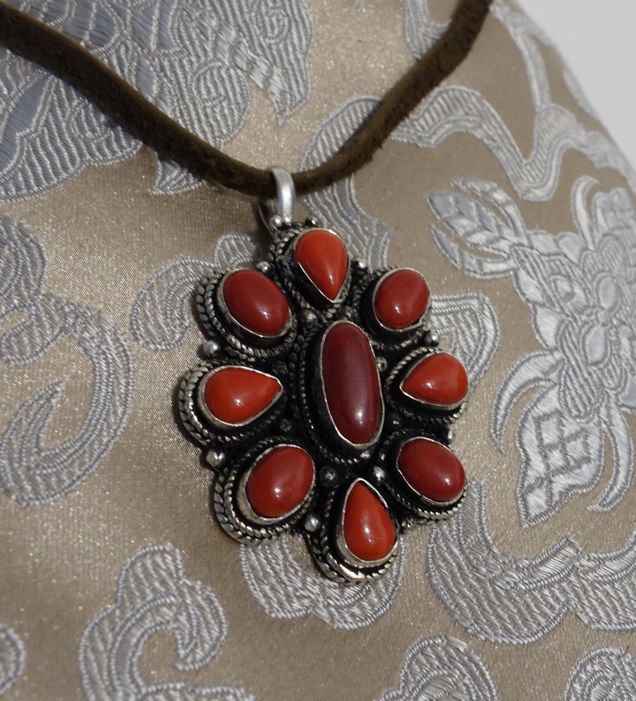 Pendente in argento con fiore di loto in corallo dal Nepal
